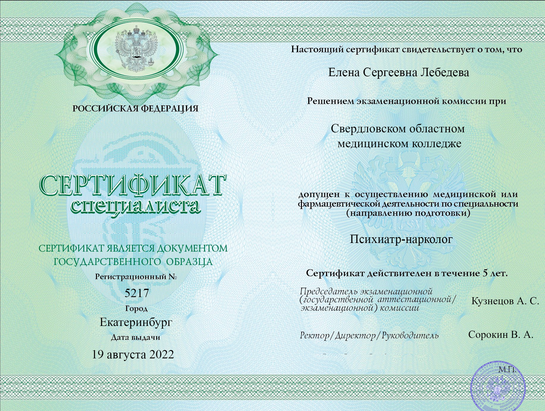 Елена Сергеевна Лебедева врач нарколог клиники доктора Стукаловой в Россоши